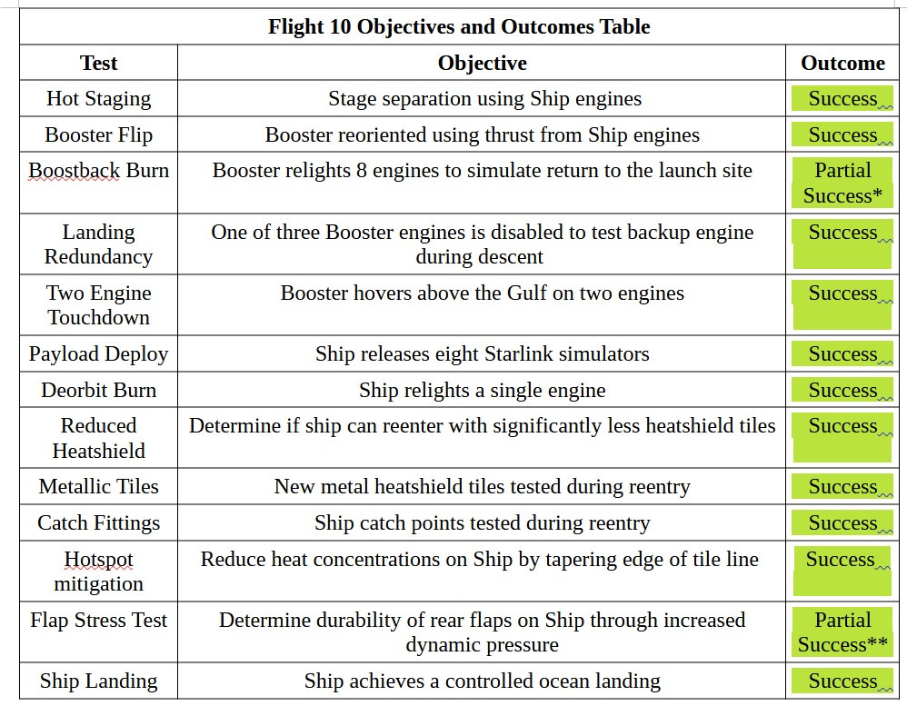 “Every major objective was met [on Flight 10], providing critical data to inform designs of the next generation Starship and Super Heavy.” ~ SpaceX